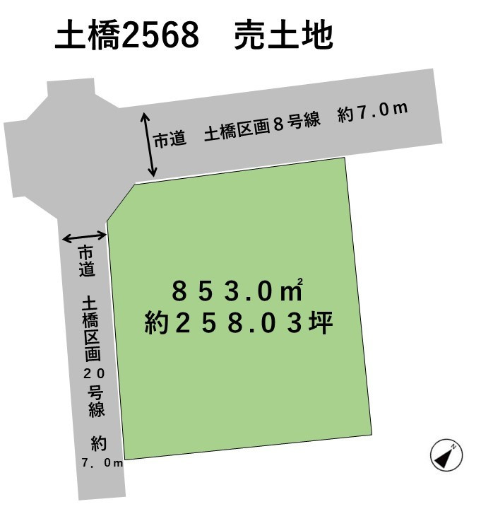 | 接道状況 | 二方 (北側 公道7.0m) (西側 公道7.0m) | ||
